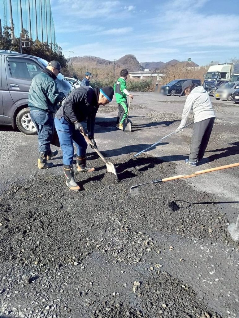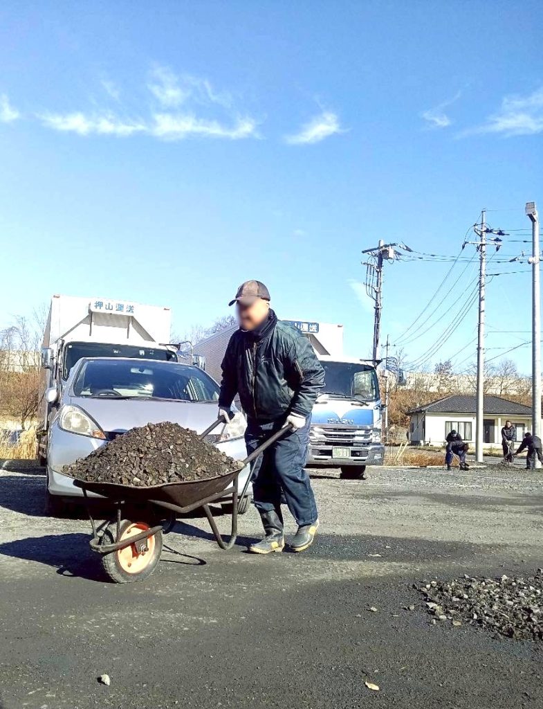 車庫の敷地内で窪んでいた箇所には砂利を敷き詰め、安全に利用できるよう整備を行いました。