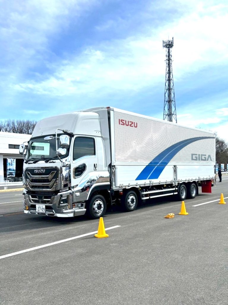 新型GIGAは、日本初の車輪の脱輪を防ぐ機能や、周囲の歩行者、自転車、隣の車線の乗用車にも気を配る、事故防止のためのシステムがさらに向上しているそう。